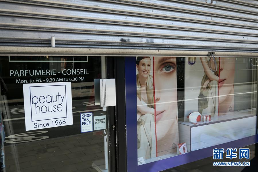 這是3月18日在比利時(shí)布魯塞爾拍攝的一家關(guān)閉的化妝品商店。 新華社記者 張鋮 攝