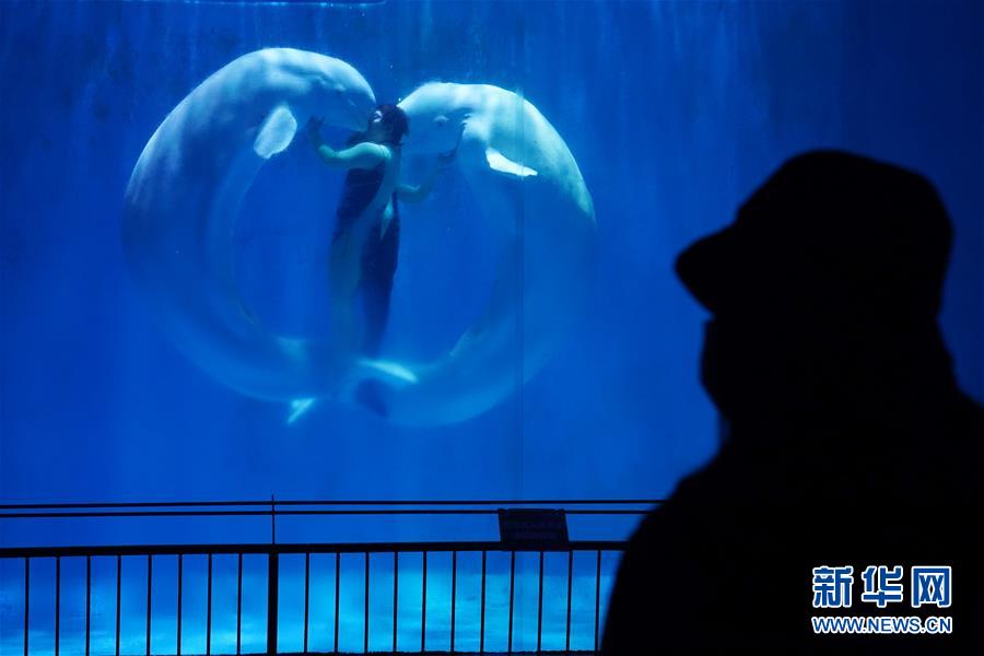 3月23日,游客在哈爾濱極地館觀賞白鯨表演。當(dāng)日,哈爾濱極地館恢復(fù)營業(yè)。目前,極地館日接待人數(shù)不超過400人,園區(qū)采取分時(shí)段、間隔性辦法安排游客有序入園。游客實(shí)名預(yù)訂門票,入園要配合測(cè)溫、佩戴口罩、掃描“龍江健康碼”,刷身份證入館。新華社記者王建威攝