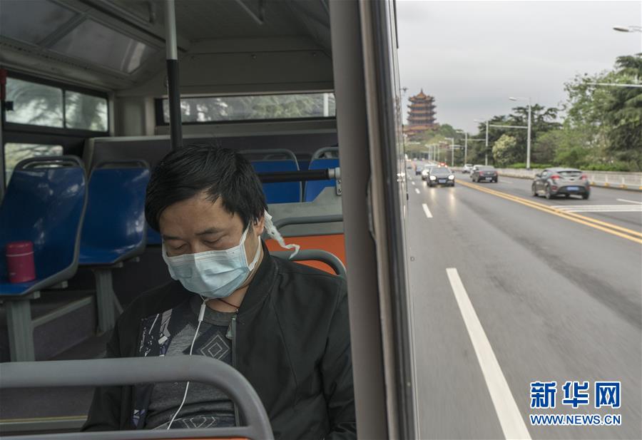3月25日,61路公交車駛過(guò)黃鶴樓后進(jìn)入武漢長(zhǎng)江大橋。新華社記者費(fèi)茂華攝