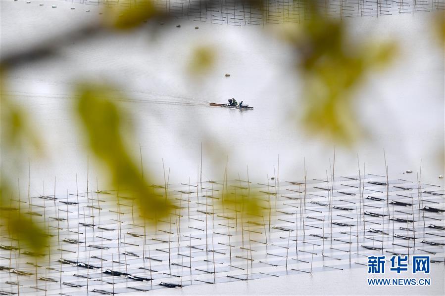 11月4日,漁船行駛在霞浦縣三沙鎮(zhèn)的紫菜種植區(qū)。近日,福建省霞浦縣沿海6萬畝紫菜迎來收獲季節(jié),漁民們出海收獲紫菜,海上田園一派繁忙豐收景象。新華社記者姜克紅攝