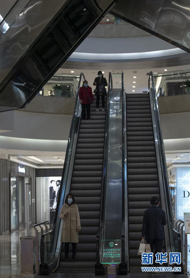 3月30日,在武商國際廣場,顧客乘坐滾梯。當(dāng)日,武漢市多家商場開門迎客。新華社記者費(fèi)茂華攝