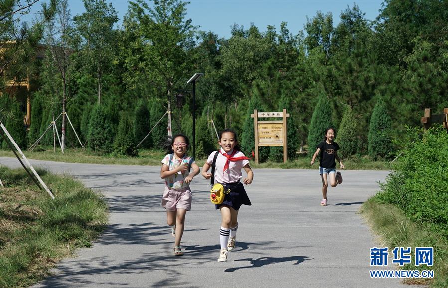小學(xué)生們?cè)谇晷懔謨?nèi)玩耍(8月29日攝)。新華社記者牟宇攝