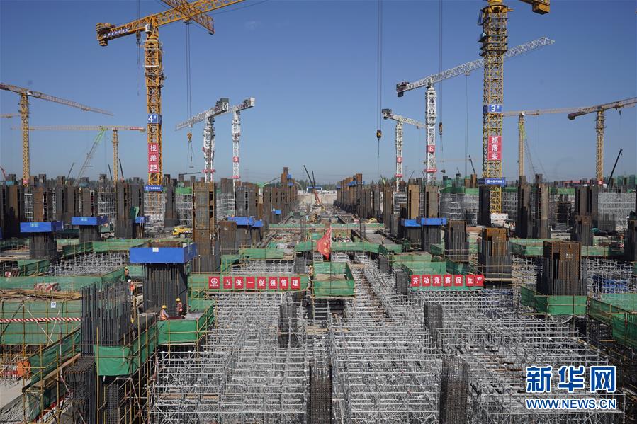 10月10日,工人在雄安站施工。新華社記者邢廣利攝