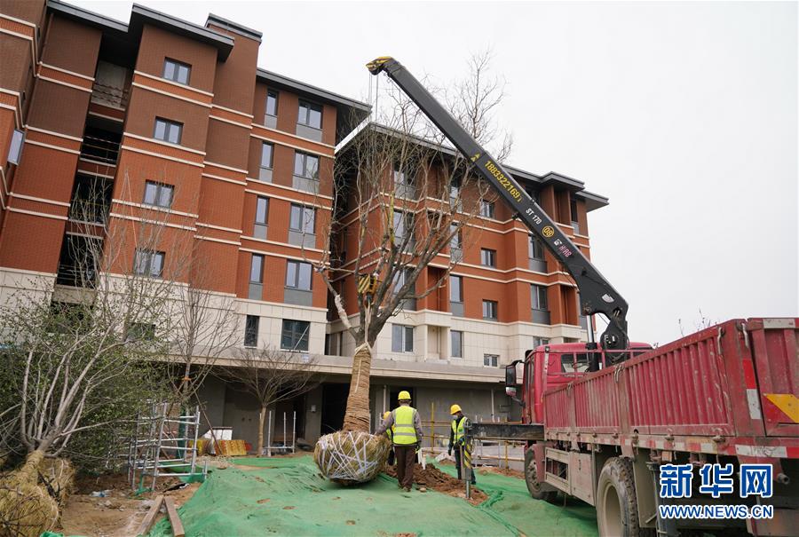 工人在雄安高質(zhì)量建設(shè)實(shí)驗(yàn)區(qū)(生活)項(xiàng)目建設(shè)現(xiàn)場(chǎng)吊裝樹木(3月26日攝)。新華社記者楊世堯攝