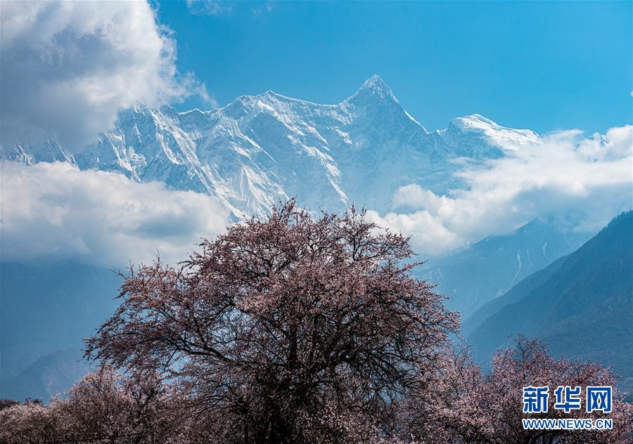 南迦巴瓦峰下盛開(kāi)的桃花(4月1日攝)。新華社記者侯捷攝