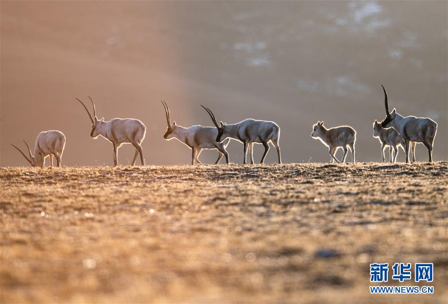 西藏羌塘自然保護(hù)區(qū)內(nèi)的藏羚羊(2019年1月31日攝)。新華社記者普布扎西攝