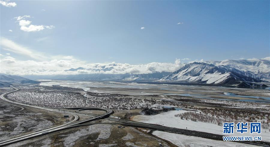 這是3月24日拍攝的雅魯藏布江雪景(無(wú)人機(jī)照片)。新華社記者普布扎西攝