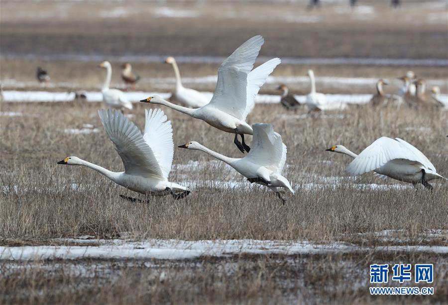 這是4月1日在張北縣黃蓋淖國家濕地公園拍攝的候鳥。近日,成群的候鳥飛臨壩上地區(qū)的河北省張北縣黃蓋淖國家濕地公園。近年來,張北縣不斷加大生態(tài)建設(shè)力度,黃蓋淖國家濕地公園已成為多種候鳥遷徙的中轉(zhuǎn)站和棲息地。  新華社記者楊世堯攝