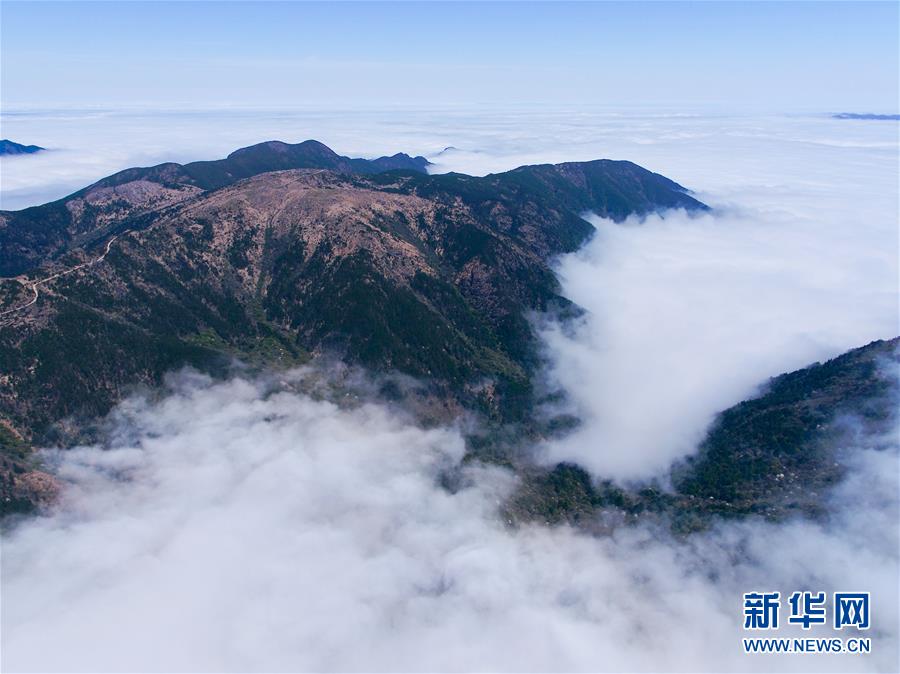 武夷山國家公園最高峰黃崗山云霧繚繞(4月1日攝,無人機(jī)照片)。 新華社記者 姜克紅 攝
