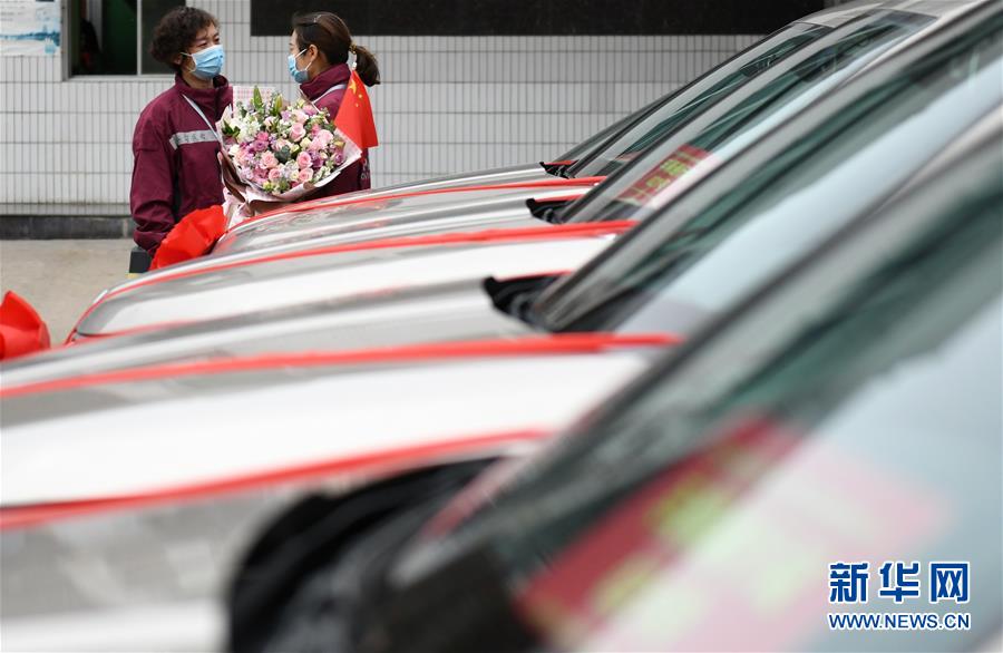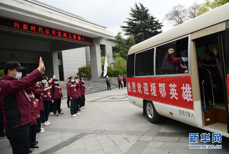 4月3日,乘車踏上歸途的寶雞市三家醫(yī)院的醫(yī)療隊隊員與“戰(zhàn)友”告別。 當(dāng)日,陜西省第一批援鄂醫(yī)療隊137名隊員在陜西省工人療養(yǎng)院結(jié)束了為期兩周的隔離休養(yǎng)。醫(yī)療隊員與“戰(zhàn)友”深情作別后,陸續(xù)踏上歸途。 新華社記者 李一博 攝