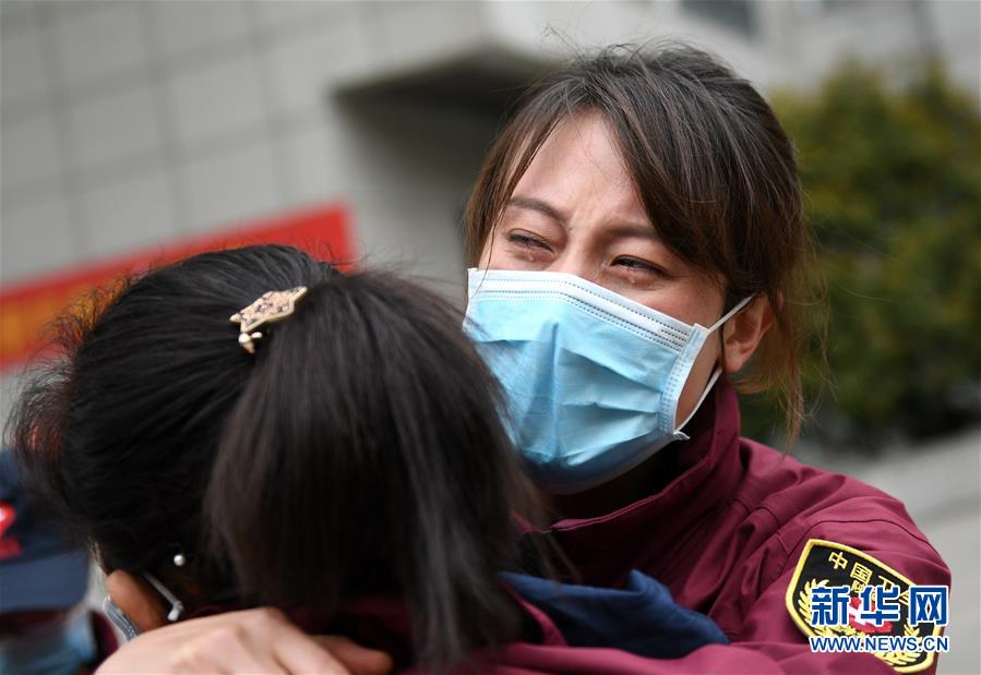 4月3日,來自西安交通大學(xué)第一附屬醫(yī)院的醫(yī)療隊隊員王沙沙(前)在送別“戰(zhàn)友”后落淚。 當(dāng)日,陜西省第一批援鄂醫(yī)療隊137名隊員在陜西省工人療養(yǎng)院結(jié)束了為期兩周的隔離休養(yǎng)。醫(yī)療隊員與“戰(zhàn)友”深情作別后,陸續(xù)踏上歸途。 新華社記者 李一博 攝