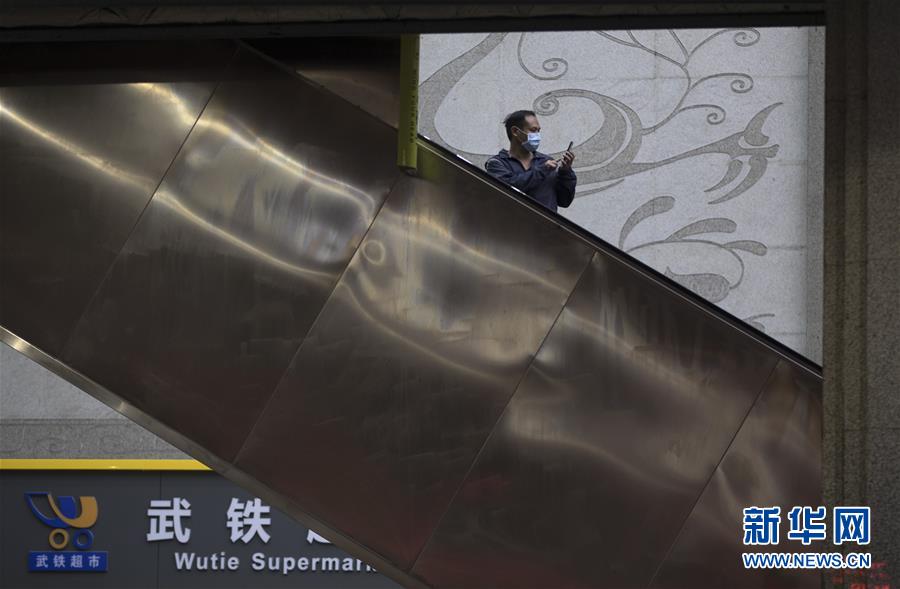 4月7日晚,一名旅客在武昌火車站拍攝站內(nèi)情景。新華社記者 費茂華 攝