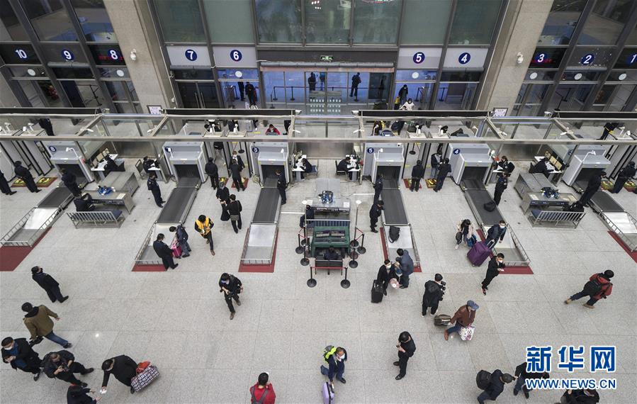 4月7日晚,旅客接受安檢后進(jìn)入武昌火車(chē)站。 新華社記者 費(fèi)茂華 攝