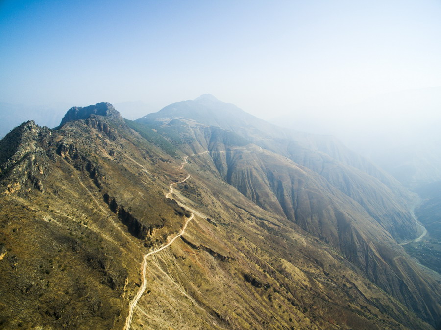 2020年4月5日,云南,昆明市祿勸縣雪山鄉(xiāng)基多村委會(huì)到基多村民小組的公。公路在原地盤旋海拔下降1200米。