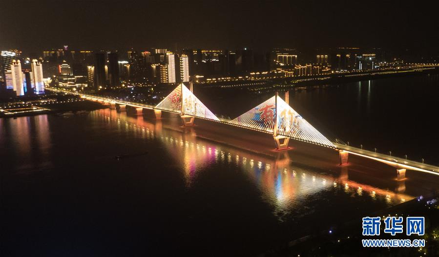 4月8日零時(shí)起,武漢市正式解除離漢離鄂通道管控措施,全市景觀照明開啟(無(wú)人機(jī)照片)。新華社記者程敏攝