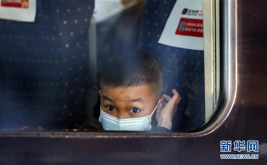 4月8日,在武漢站,一名小乘客從G431次列車上向窗外張望。新華社記者沈伯韓攝