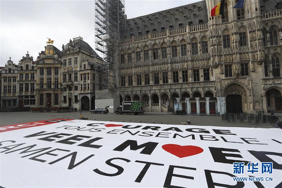 這是4月13日在比利時(shí)布魯塞爾大廣場(chǎng)拍攝的為抗擊疫情加油的巨幅海報(bào)。當(dāng)日,比利時(shí)布魯塞爾市政府工作人員在市中心的大廣場(chǎng)展開(kāi)一面巨幅海報(bào),上面用法語(yǔ)和荷蘭語(yǔ)印著“一起鼓起勇氣”“謝謝”,以感謝市民及醫(yī)療人員為抗擊疫情所做的努力。新華社記者鄭煥松攝