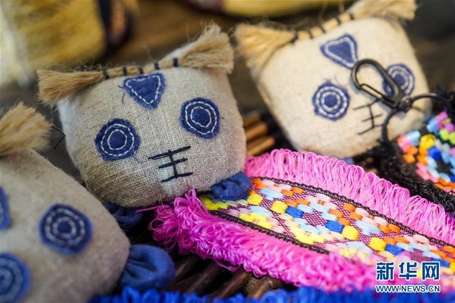這是重慶石柱中益鄉(xiāng)巾幗扶貧工坊內(nèi)展示的當?shù)貗D女制作的土家族風情鑰匙扣(4月8日攝)。近年來,重慶市石柱土家族自治縣中益鄉(xiāng)在重慶市婦聯(lián)的幫助下,以當?shù)胤沁z傳統(tǒng)技藝作為結(jié)合點,把扶貧與扶志、扶智相結(jié)合,通過引進外來文創(chuàng)企業(yè)對留守婦女、貧困及殘疾人群進行刺繡培訓,設(shè)立巾幗扶貧工坊等多種形式,幫助當?shù)卮迕駥崿F(xiàn)就業(yè)增收。據(jù)介紹,巾幗扶貧工坊運行以來,為當?shù)仃懤m(xù)開發(fā)出土家族布老虎、手提袋、餐墊繡邊、創(chuàng)意相框等一系列文創(chuàng)產(chǎn)品,幫助參加巾幗扶貧工坊的留守婦女和貧困村民實現(xiàn)月均增收近千元。新華社記者劉潺攝