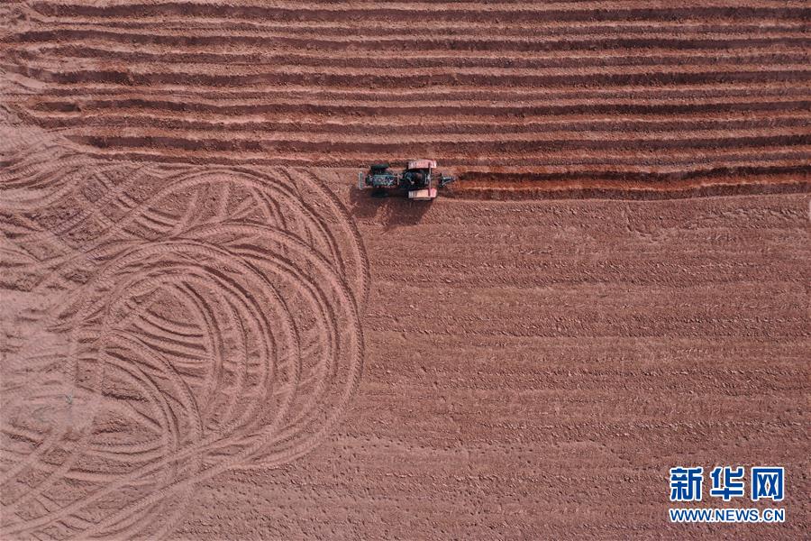 4月15日,農(nóng)民操作機械在杭錦旗道勞呼都格嘎查的農(nóng)田里翻地,為種植紅蔥做準(zhǔn)備(無人機照片)。春種時節(jié),在內(nèi)蒙古鄂爾多斯市杭錦旗道勞呼都格嘎查,農(nóng)民忙著播種紅蔥。在鄂爾多斯高原種植的紅蔥耐旱耐寒,具有較好的經(jīng)濟效益。新華社記者徐欽攝
