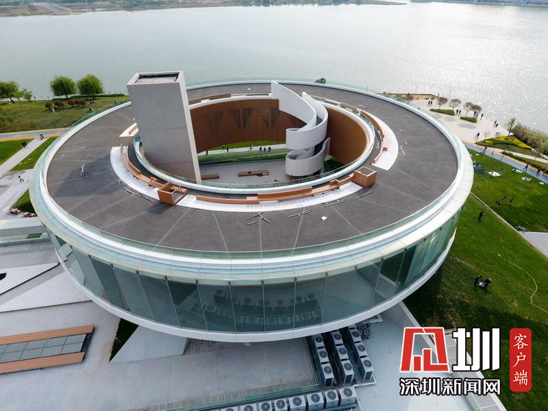 2020年4月21日,河南省鄭州市,北龍湖畔出現(xiàn)了一座巨大的圓環(huán)狀建筑,又酷似一頂圓型王冠,建筑周邊的斜坡草坪呈金字塔狀,圓環(huán)建筑仿佛“懸浮”在空中,造型別致。這座建筑是鄭州鄭東新區(qū)龍湖公共藝術(shù)中心。