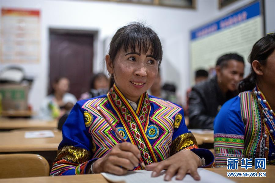4月10日,在云南省勐海縣布朗山鄉(xiāng)曼囡村曼班三隊,娜四在村里上夜校。新華社記者胡超攝