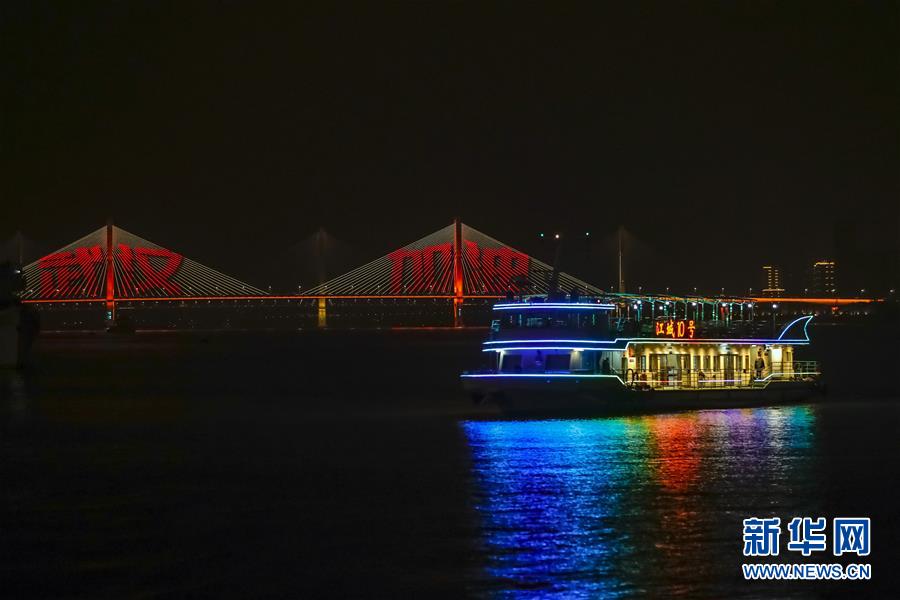 4月22日,市民乘坐武漢長江客運(yùn)輪渡出行時(shí),在船上拍攝夜景。為建立與經(jīng)濟(jì)社會(huì)發(fā)展和疫情防控需要相適應(yīng)的運(yùn)輸服務(wù)保障機(jī)制,保障市民出行需求,從4月22日起,武漢城市公共交通有序恢復(fù)全線網(wǎng)運(yùn)營。新華社記者沈伯韓攝