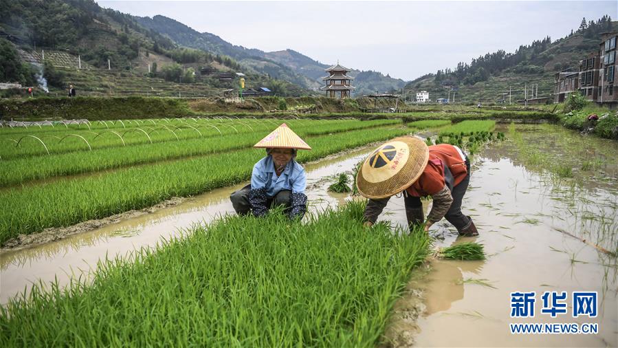 廣西三江侗族自治縣八江鎮(zhèn)平善村村民在田間拔秧苗(4月25日攝)。目前,廣西柳州市三江侗族自治縣群眾抓住時(shí)令,搶種早稻,培育靈芝和果蔬等經(jīng)濟(jì)作物,全力發(fā)展生產(chǎn),決戰(zhàn)脫貧攻堅(jiān)。三江侗族自治縣地處滇黔桂石漠化片區(qū),是國家扶貧開發(fā)工作重點(diǎn)縣。新華社記者張愛林?jǐn)z
