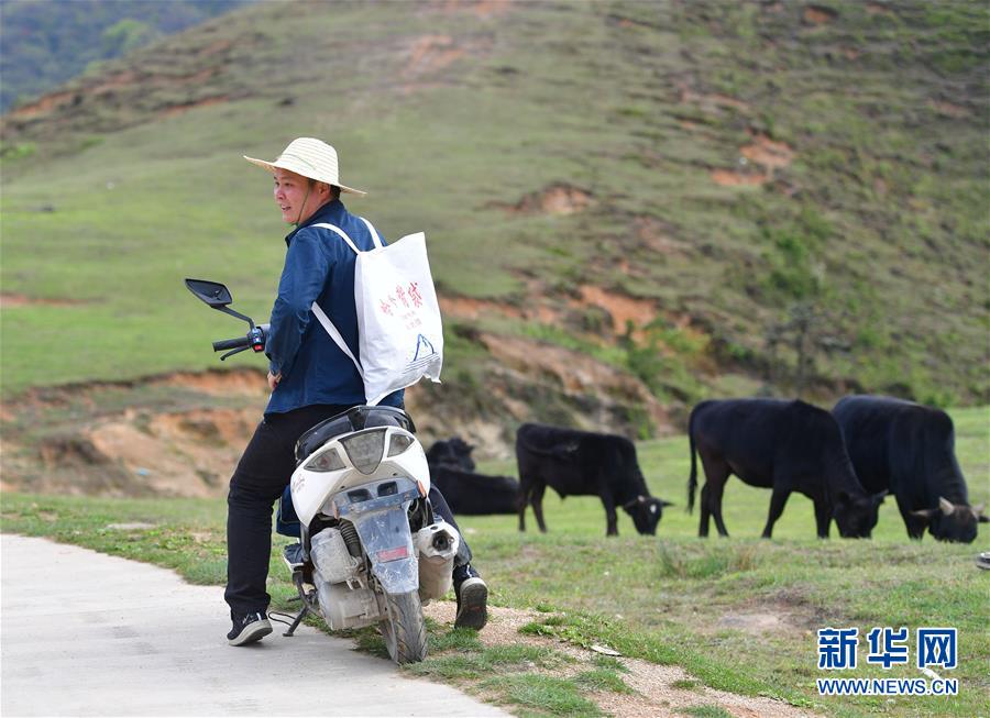 李義成騎車前往堯告村高山天然牧場(chǎng),準(zhǔn)備了解養(yǎng)牛場(chǎng)的養(yǎng)殖情況(4月26日攝)。新華社記者黃孝邦攝