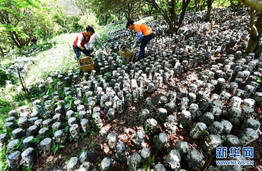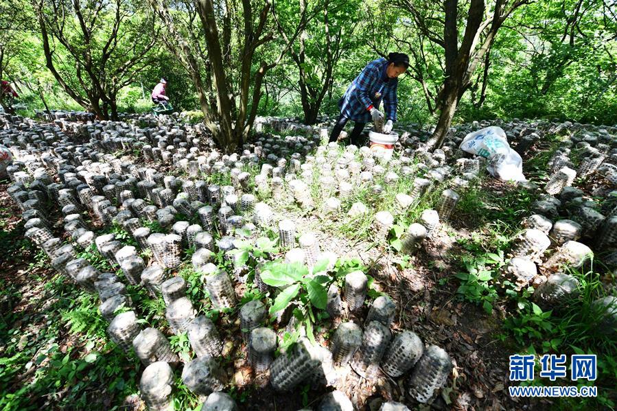 村民在劍河縣岑松鎮(zhèn)巫亮村林下仿野生食用菌基地采摘木耳(4月27日攝)。近年來(lái),貴州省黔東南苗族侗族自治州劍河縣充分利用林下土地培育木耳,既不耽誤林木生長(zhǎng),又發(fā)展了食用菌產(chǎn)業(yè)。目前,該縣采取“龍頭企業(yè)+合作社+貧困戶”的合作模式,大力推廣林下木耳種植,帶動(dòng)農(nóng)民增收。新華社記者楊文斌攝
