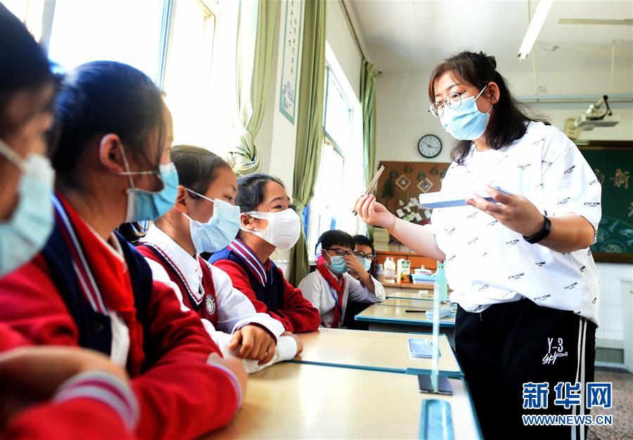 4月30日,諸暨市暨陽小學(xué)五年級4班班主任宣明霞在主題班會上向?qū)W生講解家庭用餐使用公筷公勺的重要性。當(dāng)日,浙江省諸暨市暨陽小學(xué)五年級4班開展“公筷公勺新家風(fēng)”主題班會活動,通過海報(bào)設(shè)計(jì)、情景劇表演等強(qiáng)化孩子們使用公筷公勺的意識,倡導(dǎo)文明用餐。新華社記者 韓傳號 攝