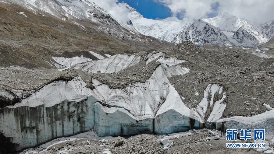 位于珠穆朗瑪峰腳下海拔5400米左右的中絨布冰川(4月30日攝,無人機照片)。位于珠穆朗瑪峰腳下海拔5400米左右的中絨布冰川,巍峨壯觀,冰塔林托起世界最高峰,讓人嘆為觀止。新華社記者旦增尼瑪曲珠攝