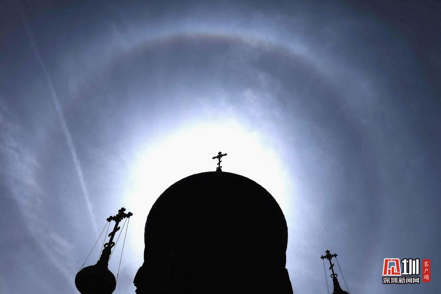 2020年5月8日,哈爾濱主城區(qū)上空美輪美奐的巨型超大日暈。