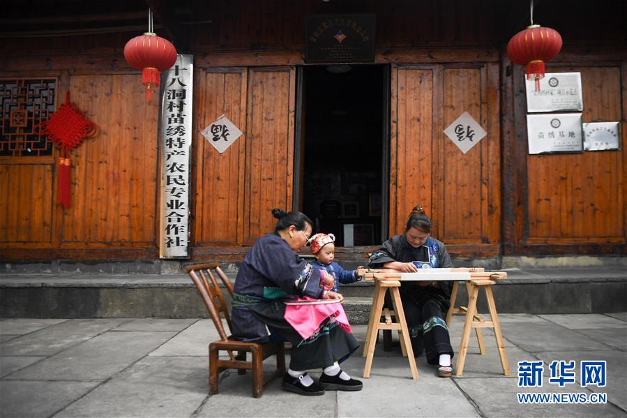 吳美金(右一)在十八洞村苗繡特產(chǎn)農(nóng)民專(zhuān)業(yè)合作社繡苗繡(4月24日攝)。1967年出生的吳美金,1992年嫁入飛蟲(chóng)村(現(xiàn)十八洞村飛蟲(chóng)寨)時(shí),只有爛泥路的飛蟲(chóng)村不僅田土少,掙錢(qián)活路也少,生活十分困難。2014年,吳美金加入了十八洞村苗繡特產(chǎn)農(nóng)民專(zhuān)業(yè)合作社,從小就會(huì)的苗繡傳統(tǒng)手藝如今成了家庭增收的法寶,不僅在家門(mén)口就把錢(qián)掙了,同時(shí)還能照顧年幼的孫子孫女?!艾F(xiàn)在的日子,比年輕的時(shí)候好多了?!眳敲澜鹫f(shuō)。新華社記者薛宇舸攝
