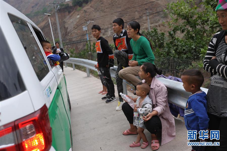 5月12日,四川省昭覺(jué)縣阿土列爾村第一批26戶(hù)貧困戶(hù)坐上開(kāi)往昭覺(jué)縣易地扶貧搬遷縣城集中安置點(diǎn)的新家,與其他村民道別。新華社記者江宏景攝