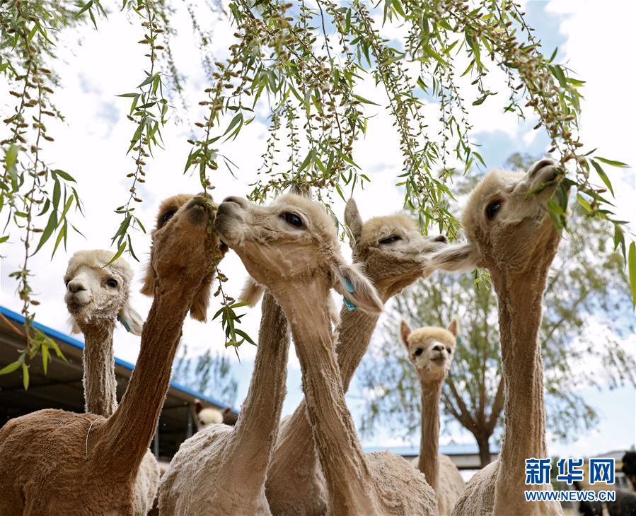 5月12日,剪下絨毛的羊駝在養(yǎng)殖基地的飼養(yǎng)舍里。新華社記者姚劍鋒攝