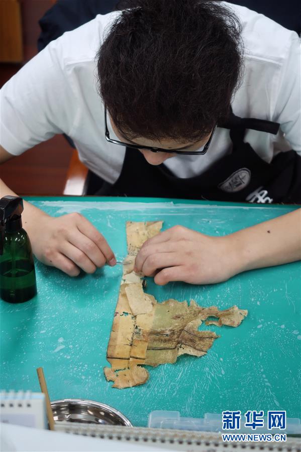 5月13日,古籍修復(fù)師在對(duì)書(shū)頁(yè)進(jìn)行修復(fù)。天一閣藏品修復(fù)部目前有修復(fù)師14人,每年約修復(fù)古籍14000余頁(yè)。據(jù)介紹,修復(fù)一冊(cè)古籍通常需要1至2個(gè)月,有的甚至需要1年以上。新華社記者鄭夢(mèng)雨攝