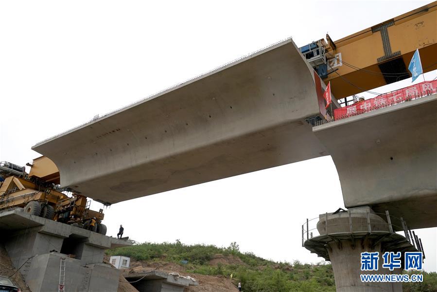 5月13日,運(yùn)架一體機(jī)在位于河南焦作的施工現(xiàn)場進(jìn)行架梁作業(yè)。 當(dāng)日,隨著最后一榀長24米、重552噸的箱梁架設(shè)就位,太焦高鐵全線橋梁架設(shè)完成。從山西太原到河南焦作的太焦高鐵是國家規(guī)劃建設(shè)的“八縱八橫”高速鐵路網(wǎng)的重要組成部分,計劃2020年底建成通車。 新華社記者李安攝