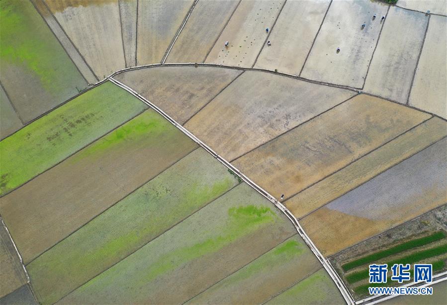 這是廣西南丹縣田園風(fēng)光(4月30日攝,無人機(jī)照片)。新華社記者周華攝