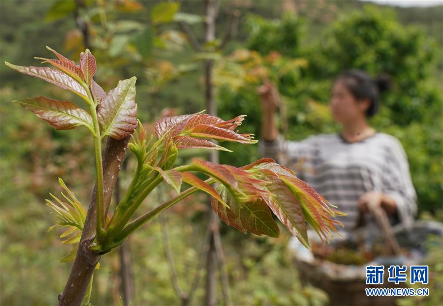 5月17日,秦皇島市撫寧區(qū)王家灣村的一位村民在自家香椿園采摘香椿芽。近年來(lái),河北省秦皇島市撫寧區(qū)王家灣村村委會(huì)帶領(lǐng)村民在坡嶺荒地種植紅香椿樹(shù)1000多畝,綠化了荒坡荒地,增加了農(nóng)民收入。新華社記者楊世堯攝