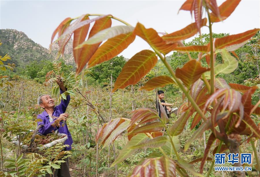 5月17日,秦皇島市撫寧區(qū)王家灣村的村民在自家香椿園采摘香椿芽。近年來,河北省秦皇島市撫寧區(qū)王家灣村村委會帶領(lǐng)村民在坡嶺荒地種植紅香椿樹1000多畝,綠化了荒坡荒地,增加了農(nóng)民收入。新華社記者楊世堯攝
