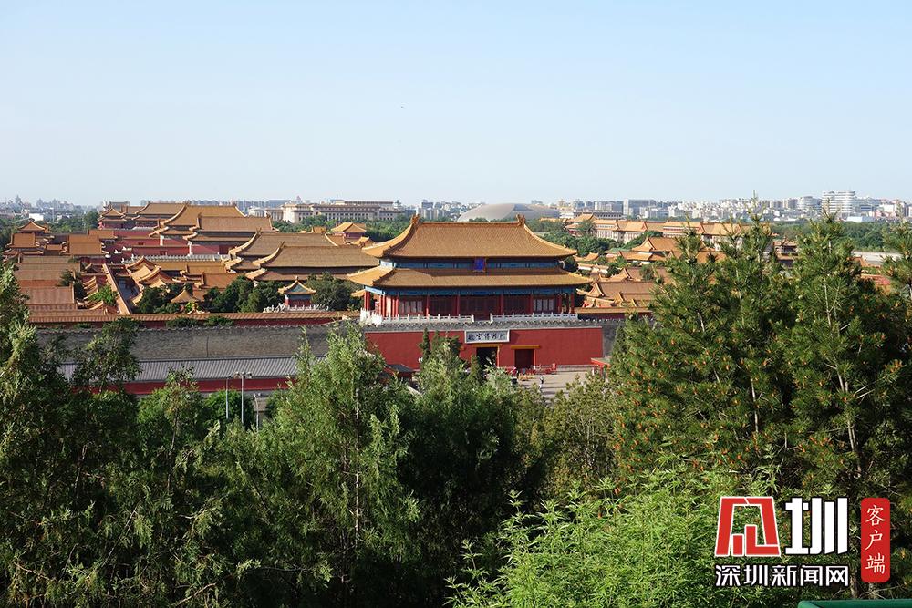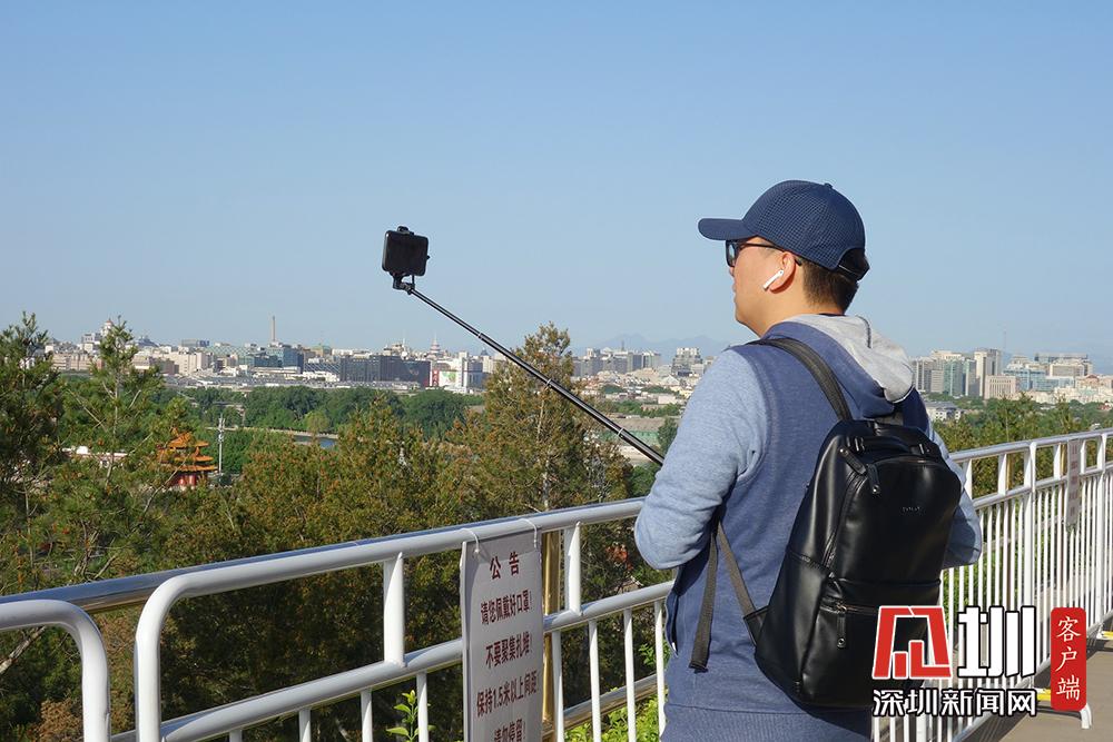 北京碧空萬里 游客登景山公園賞故宮美景