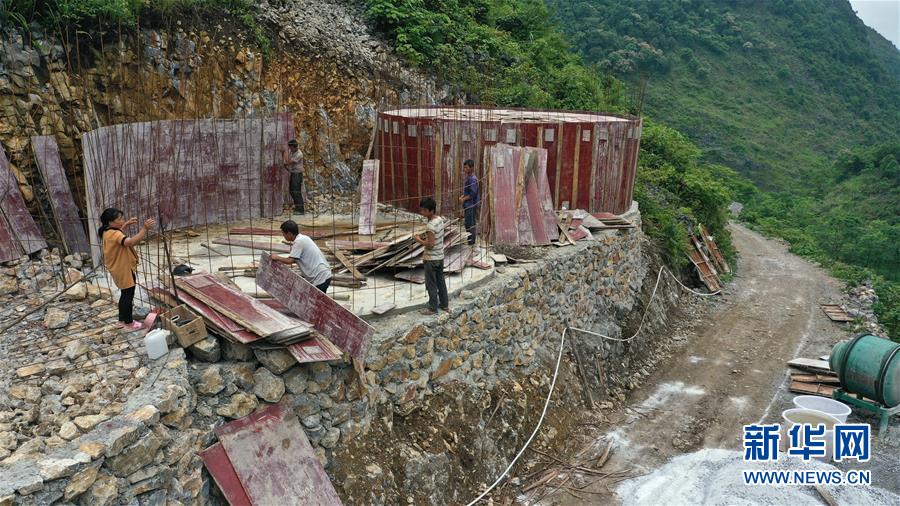 大化瑤族自治縣雅龍鄉(xiāng)勝利村群眾在建設(shè)水柜(2019年6月6日攝)。新華社記者張愛林攝