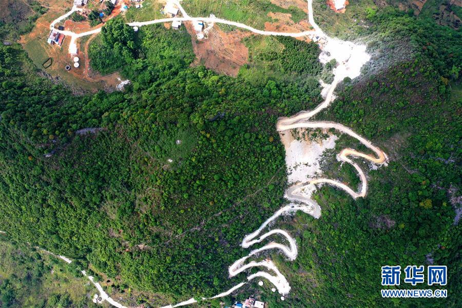 這是通向大化瑤族自治縣七百弄鄉(xiāng)弄平村的山路(5月15日攝,無人機照片)。新華社記者曹祎銘攝
