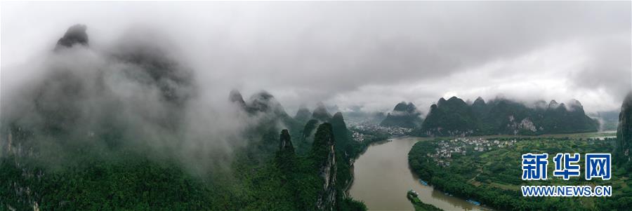 這是在廣西桂林市陽朔縣興坪鎮(zhèn)拍攝的山水風(fēng)光(5月21日攝,無人機(jī)全景照片)?!吧n蒼森八桂,茲地在湘南。江作青羅帶,山如碧玉篸……”一千多年前,唐朝詩人韓愈寫盡桂林山水之美。初夏時(shí)節(jié),在廣西桂林市陽朔縣興坪鎮(zhèn),藍(lán)天白云下,煙雨朦朧中,桂林山水盡顯秀美。新華社記者周華攝