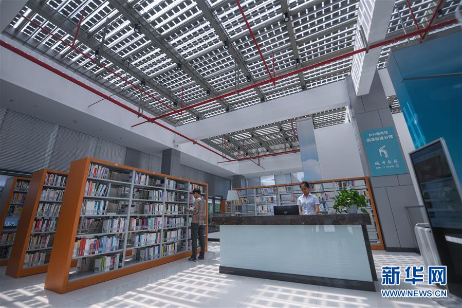 5月21日,市民在新能源小鎮(zhèn)“城市客廳”的圖書(shū)館內(nèi)看書(shū)。新華社記者徐昱攝