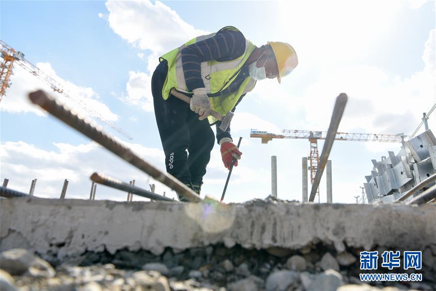5月23日,工人在烏魯木齊機(jī)場改擴(kuò)建工程施工現(xiàn)場作業(yè)。新華社記者丁磊攝