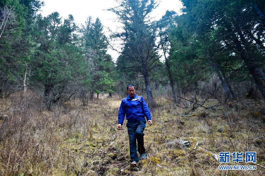 在青海省果洛藏族自治州班瑪縣境內(nèi)的瑪可河林區(qū),瑪可河林場護林員朱福海在巡查(2019年11月12日攝)。新華社記者張龍攝