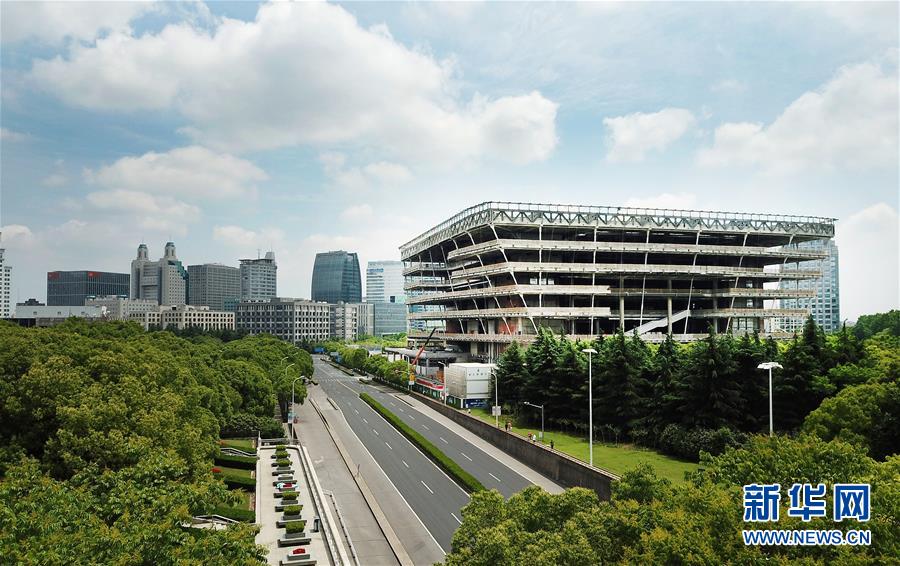 5月22日拍攝的建設中的上海圖書館東館(無人機照片)。 新華社記者 方喆 攝