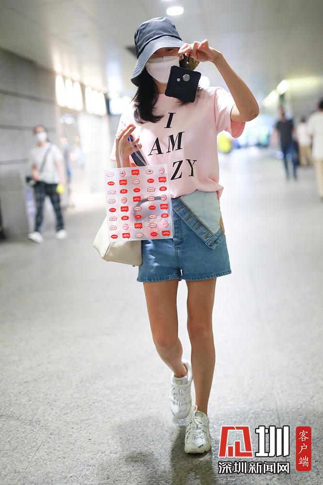 2020年5月25日,上海,張雨綺現(xiàn)身機(jī)場(chǎng)。她穿粉嫩T恤少女感十足,搭配牛仔短褲大秀美腿,拎包走機(jī)場(chǎng)笑眼彎彎女神范。