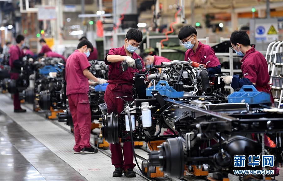 5月26日,工人在江淮汽車新港基地輕卡生產(chǎn)區(qū)內(nèi)忙碌。當(dāng)日,在位于安徽省合肥市肥西縣經(jīng)濟(jì)開發(fā)區(qū)的江淮汽車新港基地輕卡生產(chǎn)區(qū)內(nèi),工人在做好疫情防控的同時(shí)加緊生產(chǎn)。新華社記者劉軍喜攝